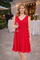 Superbe robe rouge signée Passions d’Ailleurs, avec une coupe originale sur les côtés idéale pour celles qui souhaitent camoufler les hanches tout en gardant une allure élégante.