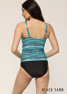 Joli tankini de la compagnie Black Sand, coloré d’un magnifique mélange de turquoise et de marine. Son twist élégant à l’avant met en valeur la poitrine, tandis que l’élastique intérieur assure un maintien tout en confort. 🌊💙 Un modèle à la fois féminin, moderne et flatteur pour toutes les silhouettes